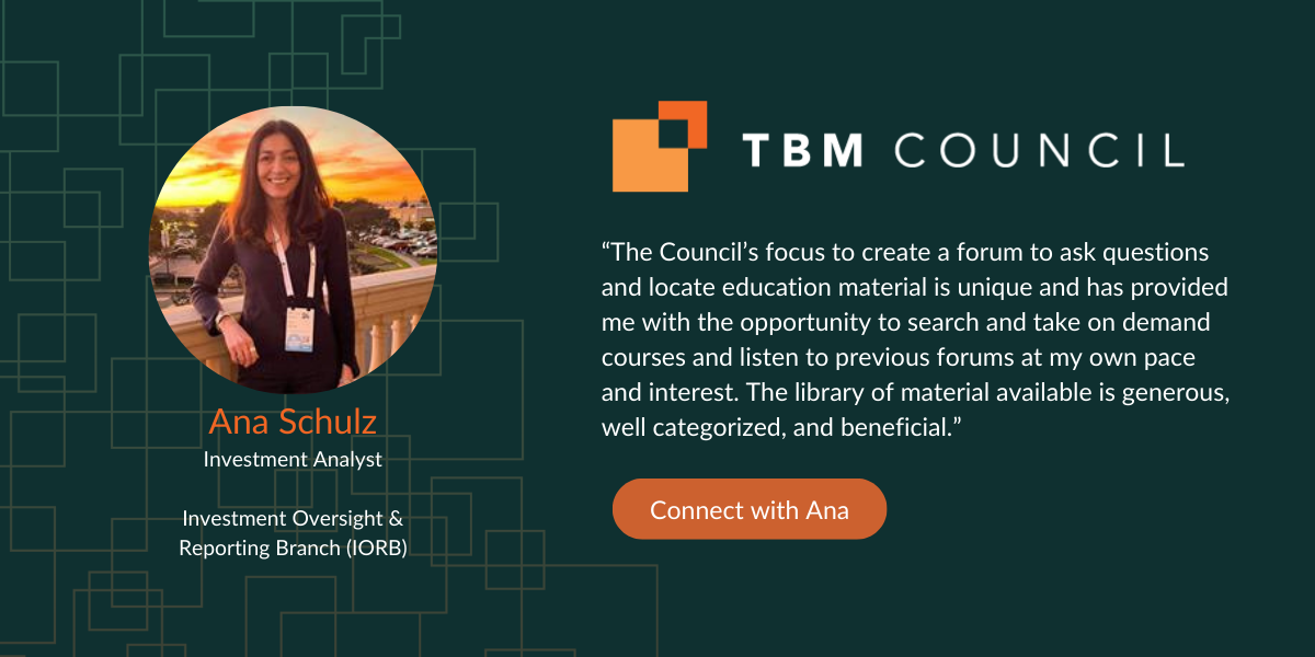 I love the TBM Council community because, while we all share the same goal, each of us has a unique journey. The community fosters connections among professionals across industries, enabling us to exchange ideas, use cases, pitfalls, and best practices. Through collaboration, we avoid reinventing the wheel and create opportunities for innovation.